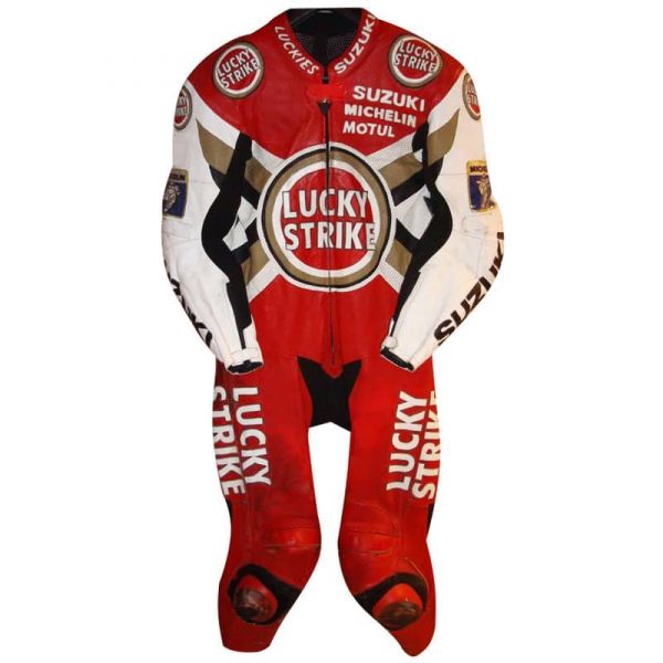 - Style / Design Features: Retro MotoGP racing livery with 1997 Suzuki Lucky Strike branding; top-grain leather finish; removable knee sliders; optional aerodynamic hump; optional rubber padding