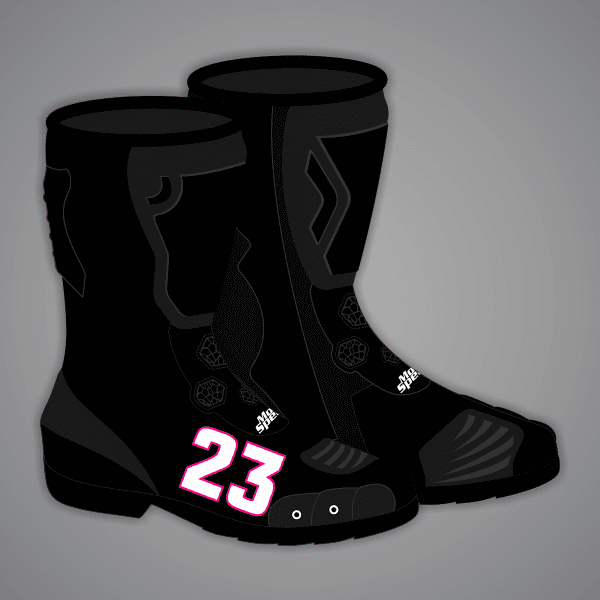 - Style / Design Features: Black leather racing boot with protective guards and race-focused detailing