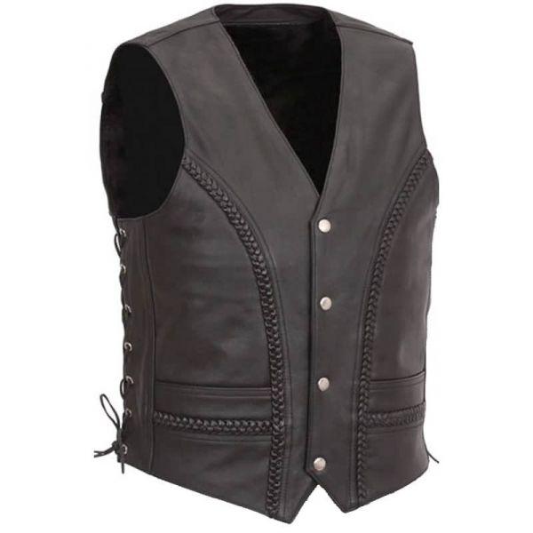 Pour ceux qui préfèrent une approche plus minimaliste mais audacieuse, un gilet motard en cuir est un incontournable. Un gilet en cuir n'est pas seulement pratique pour la conduite, offrant une couche de protection supplémentaire, mais il est également élégant et fonctionnel. Il s'associe bien à la fois avec un pantalon en cuir ou un jean. C'est une pièce polyvalente pour ceux qui veulent améliorer leur équipement de moto tout en faisant une forte déclaration de mode.