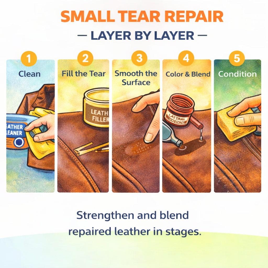 Des études montrent que les dommages mineurs sur le cuir se propagent plus rapidement lorsqu'ils sont ignorés. Le réparer tôt permet d'éviter des fissures et des déchirures plus profondes.
