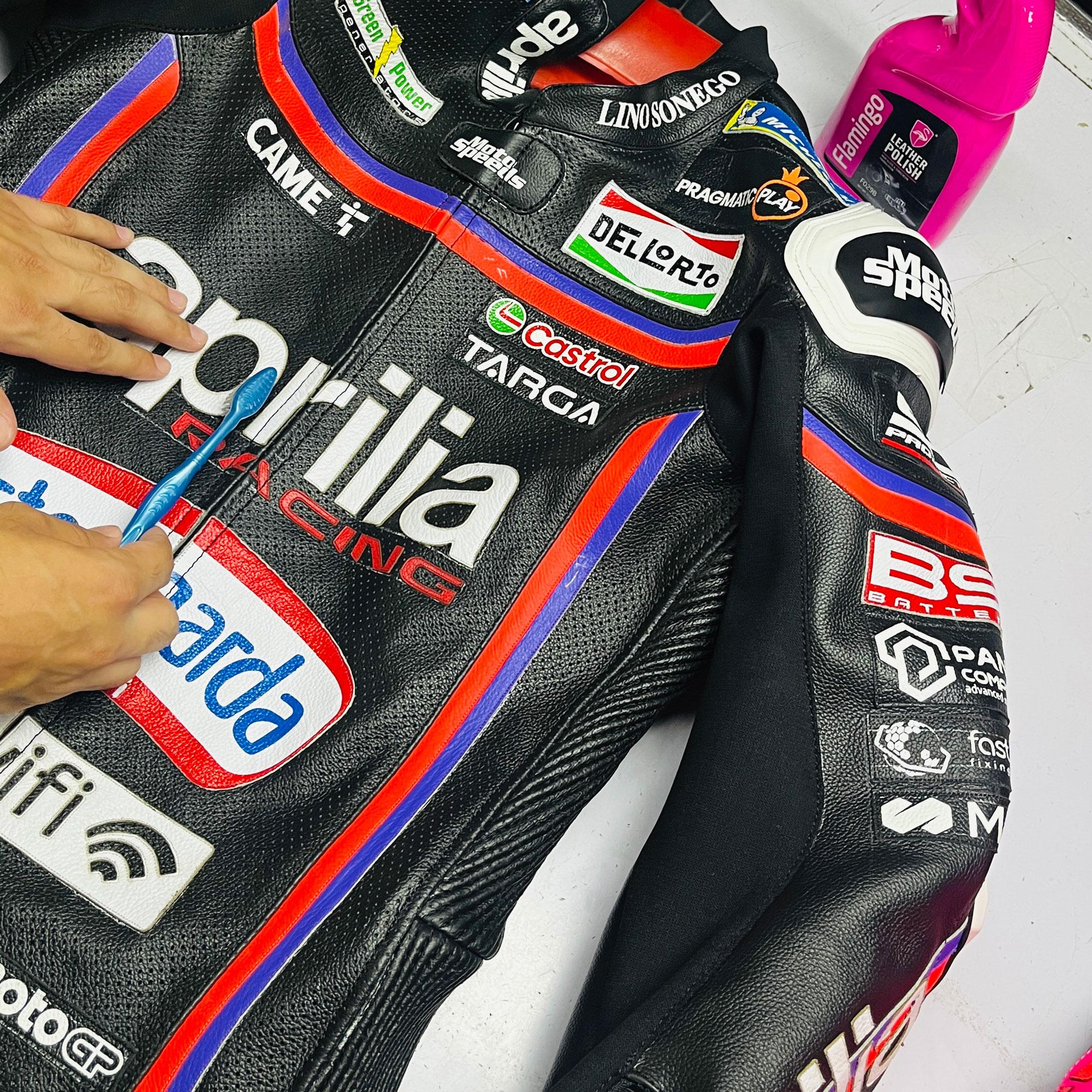 Ils s'assurent que le grain du cuir sur la manche gauche correspond parfaitement à celui de la manche droite.