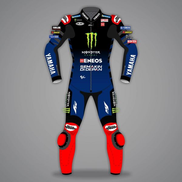 - Style / Design Features: Yamaha MotoGP branding; race-oriented leather suit; removable knee sliders; optional aerodynamic speed hump