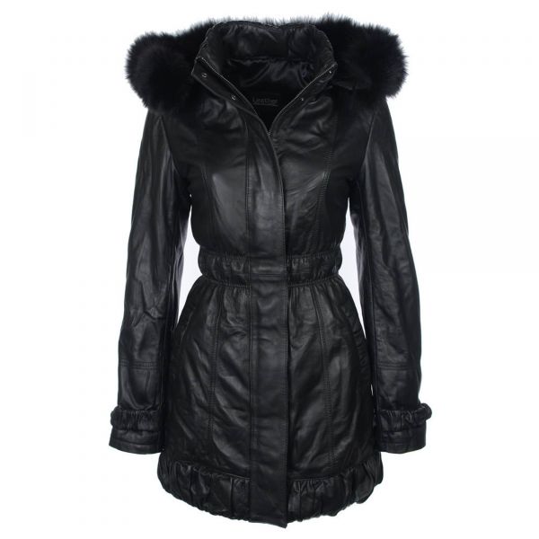 Manteau en cuir avec capuche en fourrure pour femmes