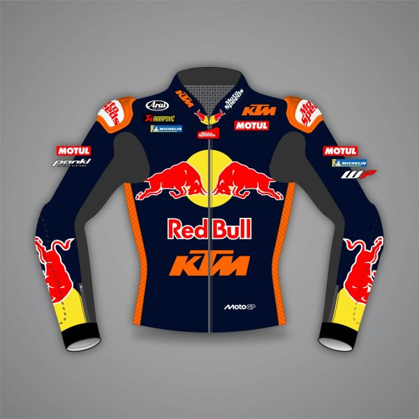- Style / Design Features: Red Bull KTM MotoGP 2026 racing livery; external elbow sliders; hump; armor-ready seam construction
