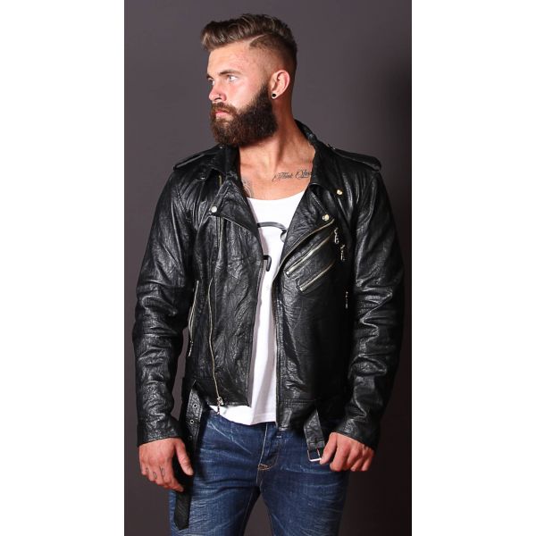 - Veste de style biker pour homme en 100% cuir de vache