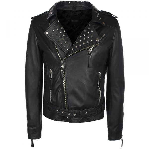 Veste en cuir cloutée pour hommes