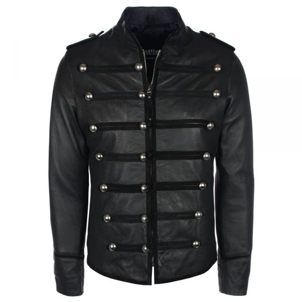 Découvrez le Gothic Leather Jacket Mens, la combinaison parfaite d'élégance et de robustesse. Fabriqué en 100% cuir nappa de mouton, ce blouson allie confort et style. Son design militaire, avec des épaulettes et un col montant, vous assure une allure unique que beaucoup adorent.